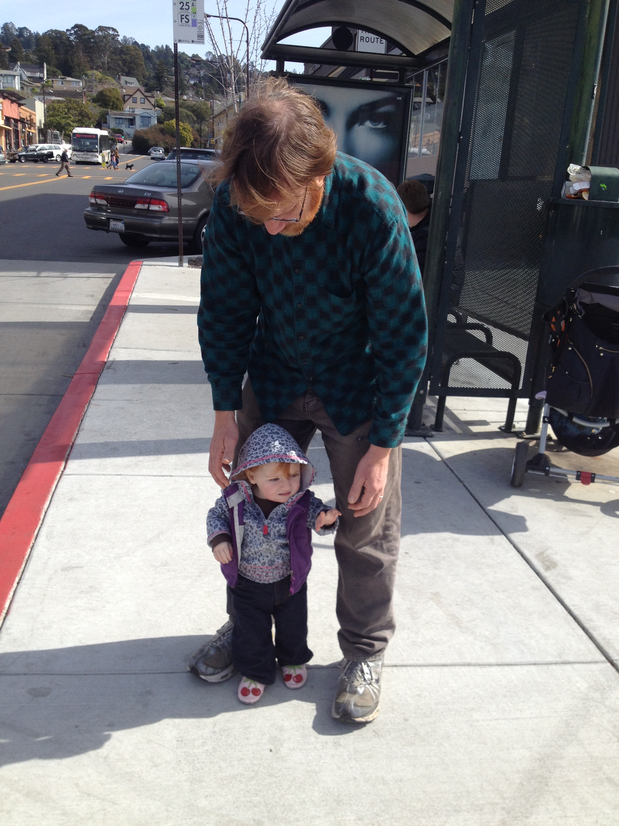 Overall, the whole trip took about two and a half hours including walking to BART, waiting for transit, riding on transit and making transfers. All the bus drivers were pleasant. Fern enjoyed looking out the windows and sitting on our laps. We rolled the stroller right on the BART and the buses so it was fairly easy carrying all the baby stuff.