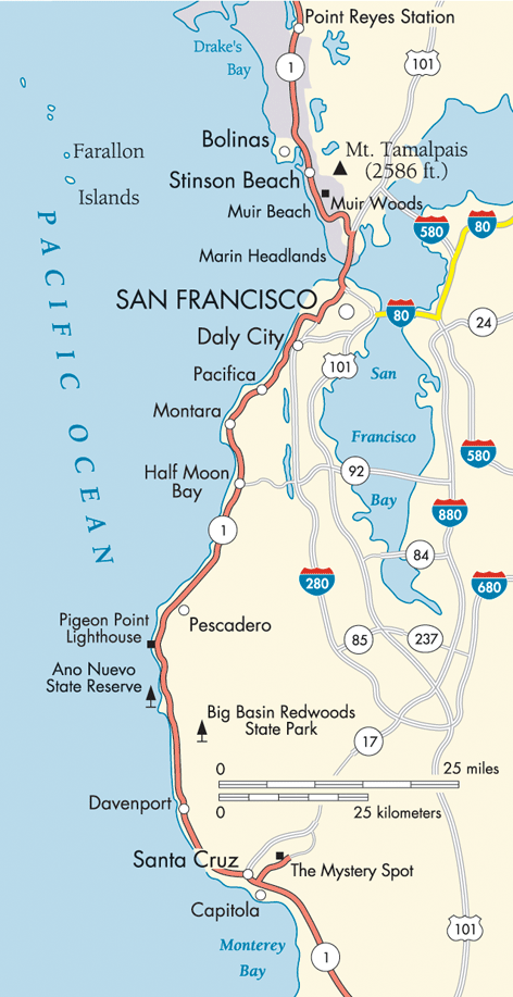 At Daly City, we took the SamTrans 110 bus to Linda Mar Park N Ride – $2.00 and it takes about 35 minutes. The transfer between BART and the bus was timed so the bus left about one minute after we got on board! The ride on Bus 110 is through suburban neighborhoods which is a little slow but it is interesting to see all the houses and how people do their yards. At the top of a long hill around Colma you get a great ocean view along the beautiful coast and then you go parallel to highway 1 past beaches.