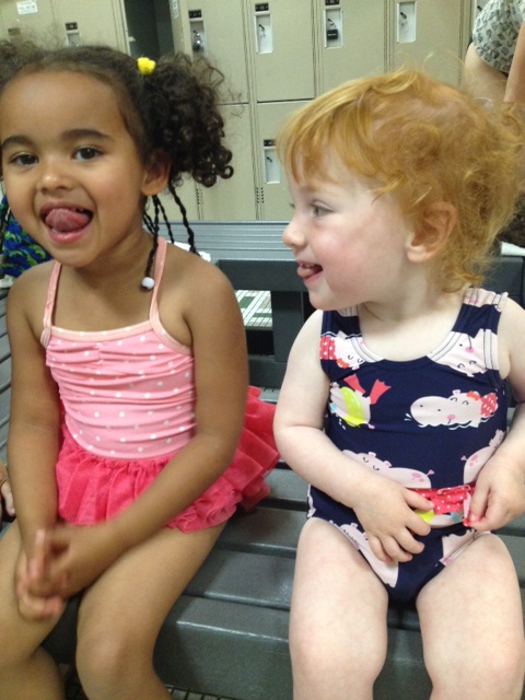 And, just for the cuteness factor, here is a picture of Ramona and Fern hanging at the Y together getting ready for swimming: